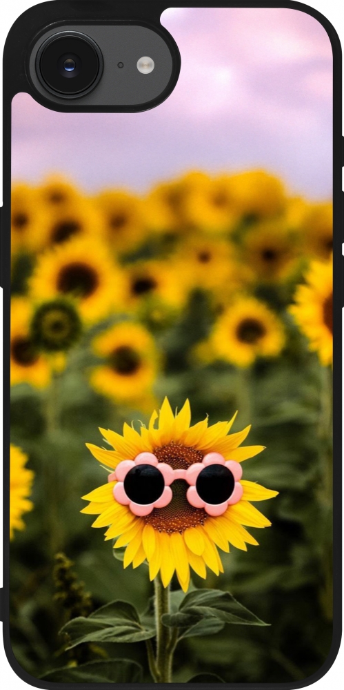 Coque iPhone 17e / 16e - Silicone rigide noir Sunflower with glasses Spring 2026