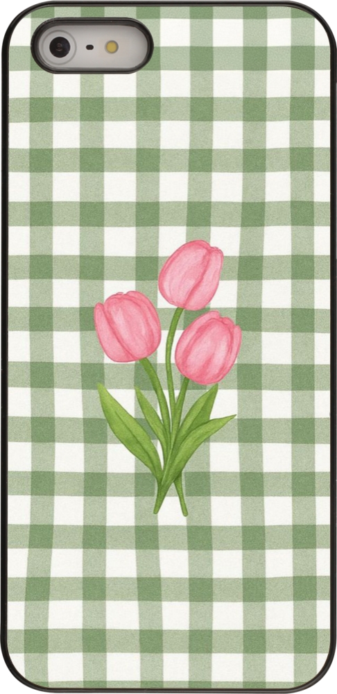 Coque iPhone 5/5s / SE (2016) - Green vichy tulips Spring 2026