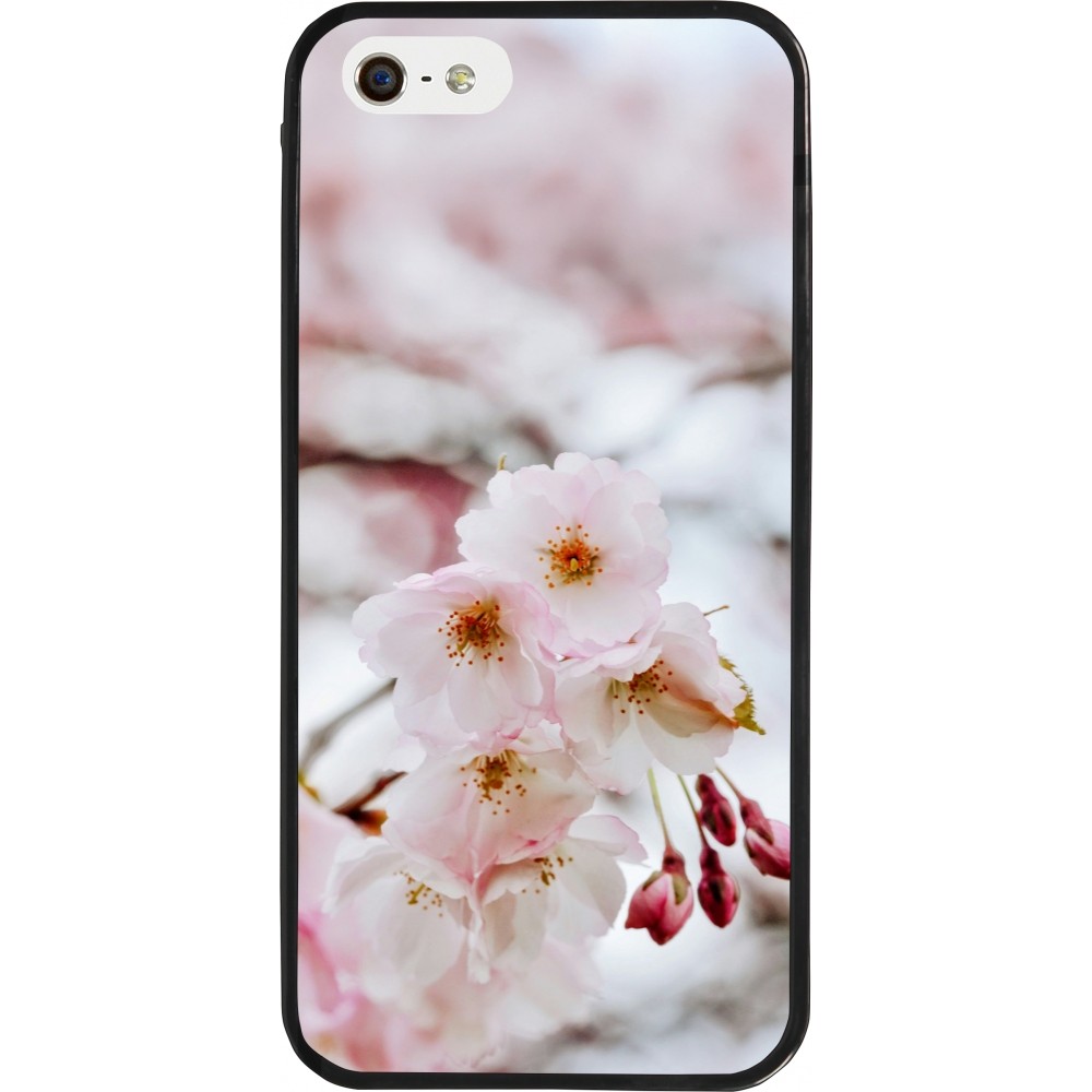 Coque iPhone 5/5s / SE (2016) - Silicone rigide noir Cherry tree Spring 2026