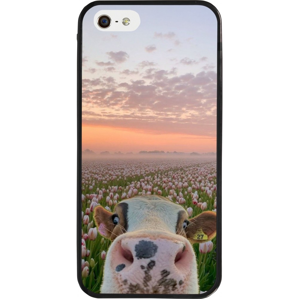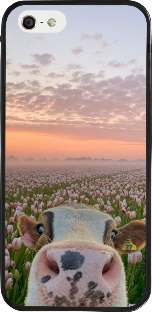 Coque iPhone 5/5s / SE (2016) - Silicone rigide noir Cow with tulips Spring 2026