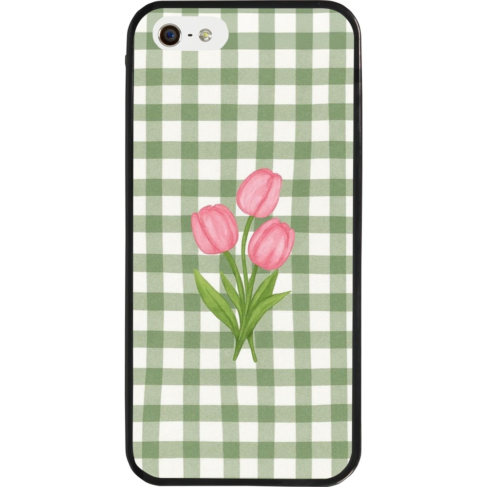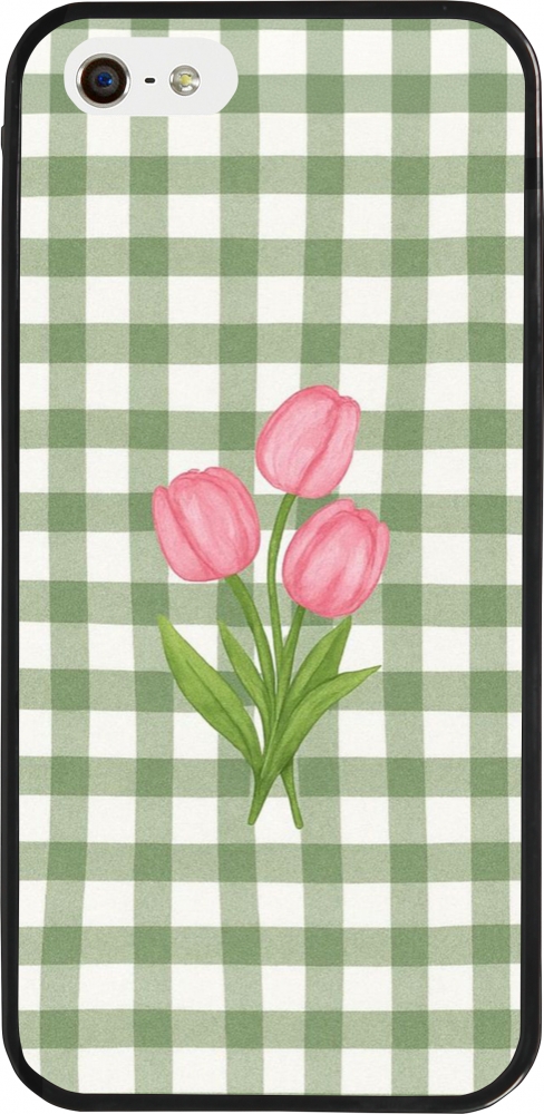 Coque iPhone 5/5s / SE (2016) - Silicone rigide noir Green vichy tulips Spring 2026