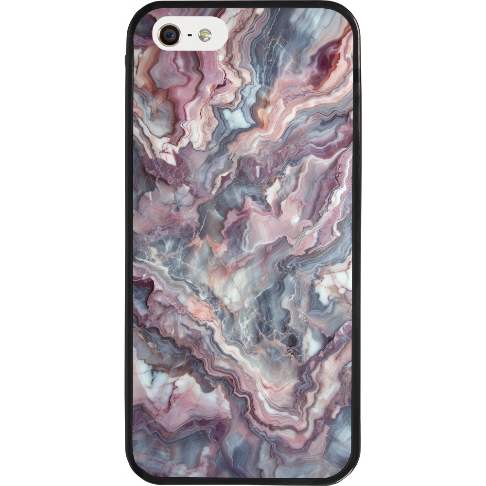 Coque iPhone 5/5s / SE (2016) - Silicone rigide noir Marbre violette argentée