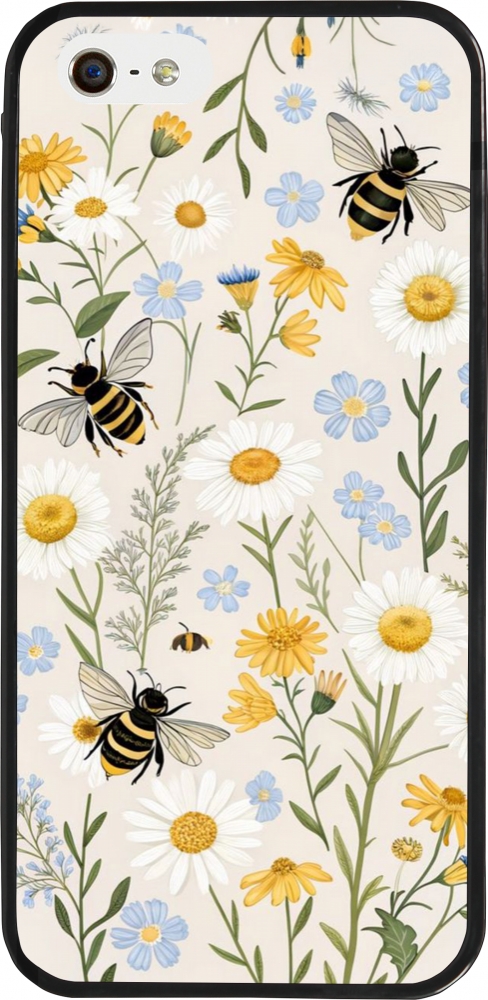 Coque iPhone 5/5s / SE (2016) - Silicone rigide noir Pattern bees Spring 2026