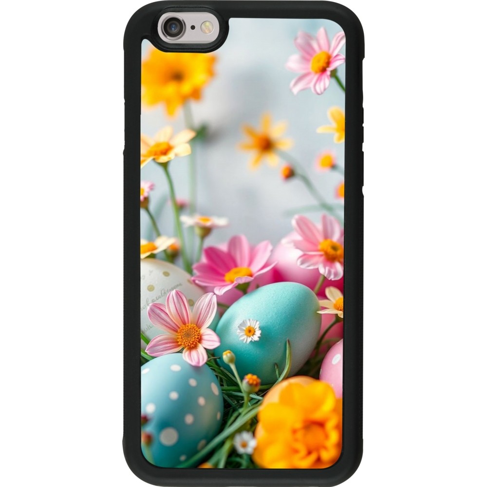 Coque iPhone 6/6s - Silicone rigide noir Easter 2026 Eggs with flowers