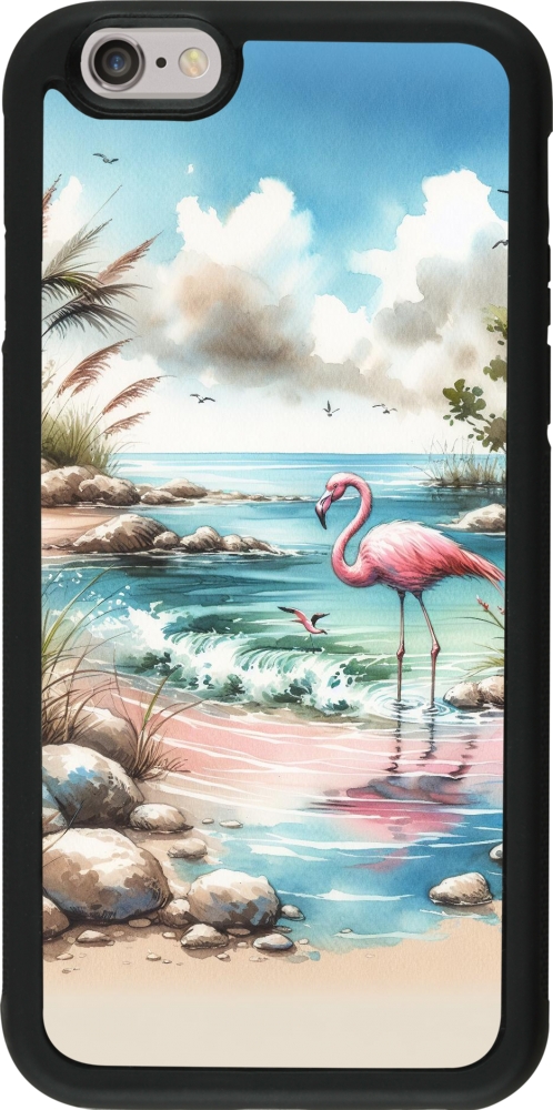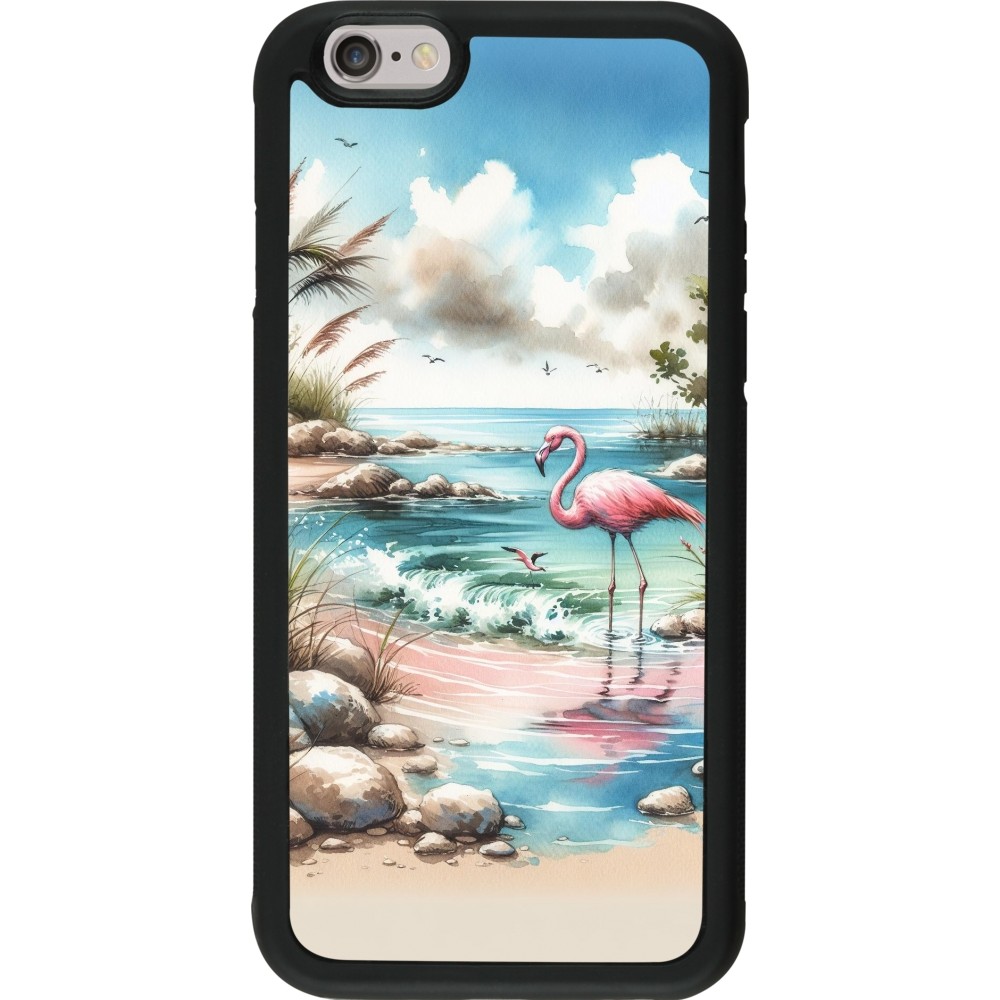 Coque iPhone 6/6s - Silicone rigide noir Flamant rose aquarelle