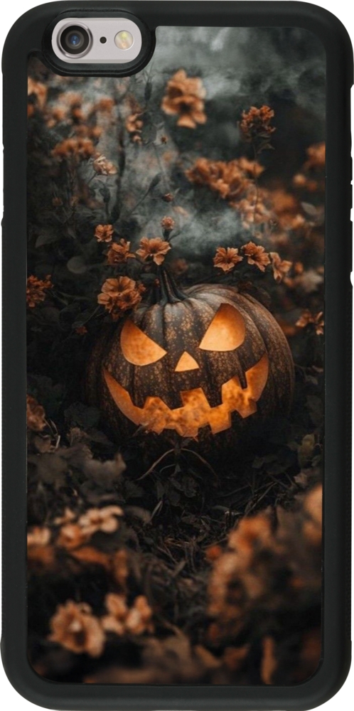 Coque iPhone 6/6s - Silicone rigide noir Halloween 2025 Pumpkin with flowers