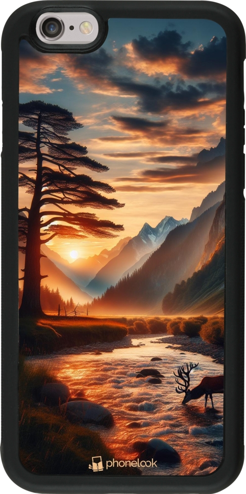Coque iPhone 6/6s - Silicone rigide noir Valley Sunset Deer Tree