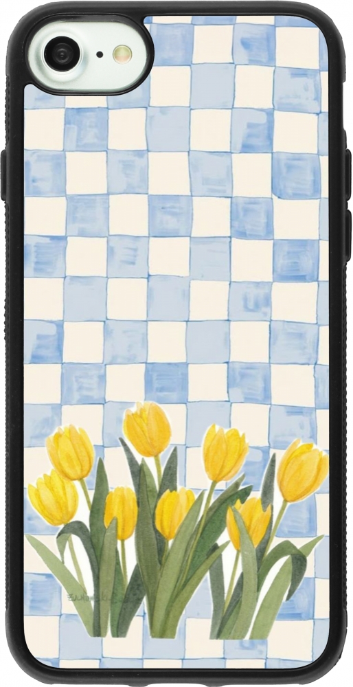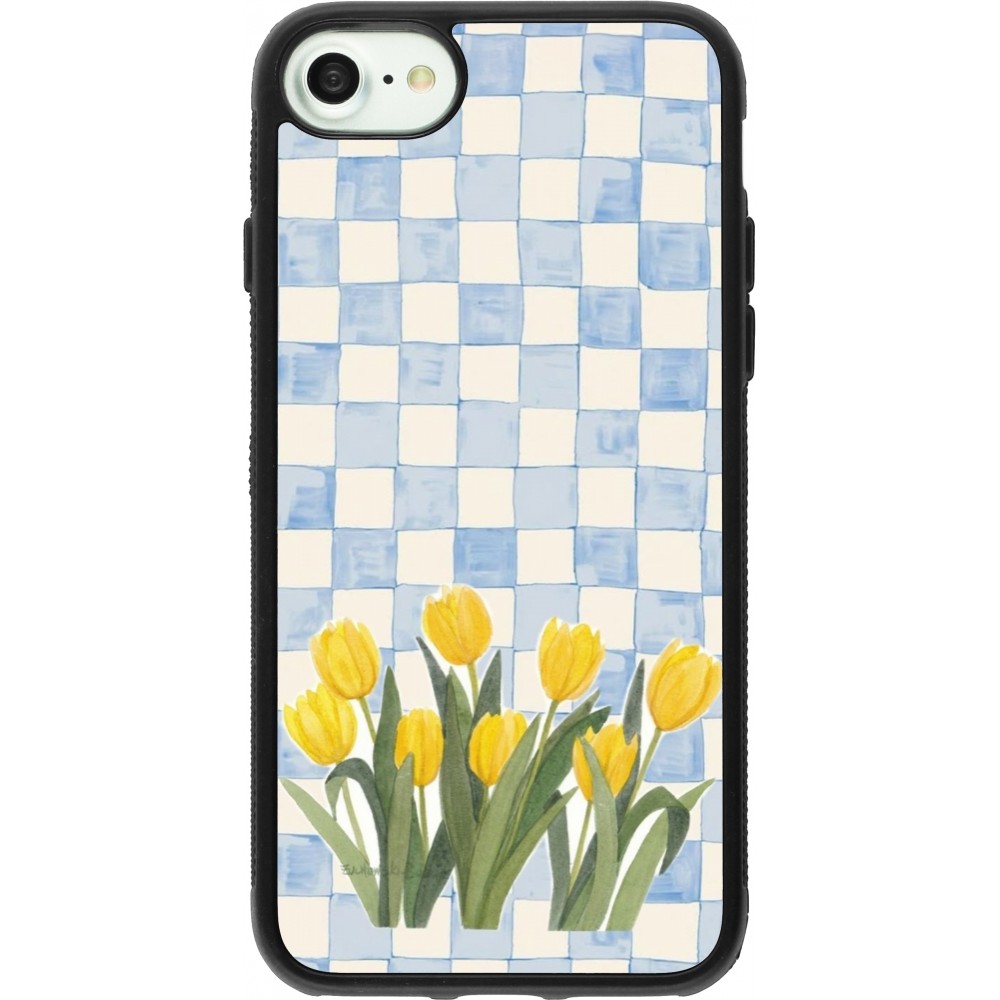 Coque iPhone 7 / 8 / SE (2020, 2022) - Silicone rigide noir Blue vichy tulips 2026