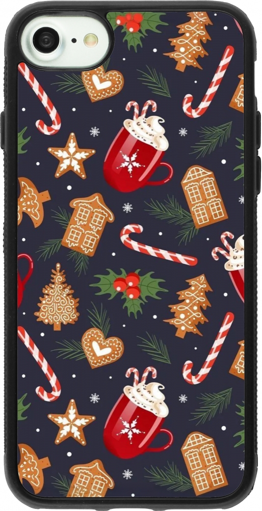 Coque iPhone 7 / 8 / SE (2020, 2022) - Silicone rigide noir Christmas 25 Pattern Gingerbread House