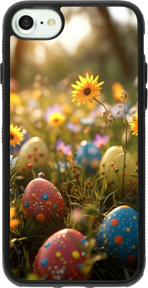 Coque iPhone 7 / 8 / SE (2020, 2022) - Silicone rigide noir Easter 2026 Decorated eggs
