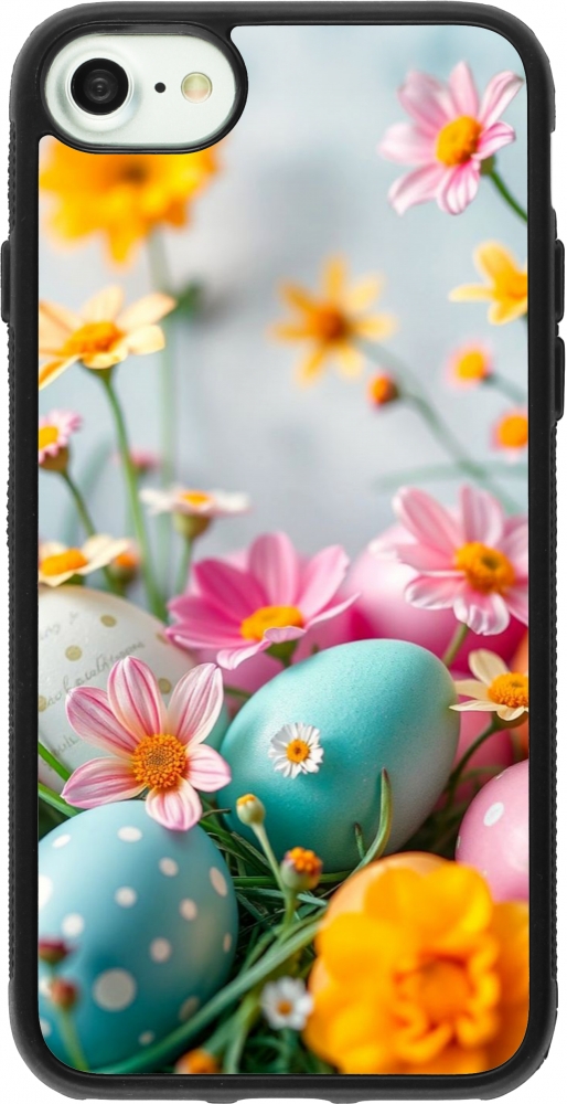 Coque iPhone 7 / 8 / SE (2020, 2022) - Silicone rigide noir Easter 2026 Eggs with flowers