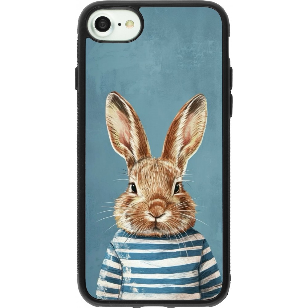 Coque iPhone 7 / 8 / SE (2020, 2022) - Silicone rigide noir Easter 2026 Rabbit navy