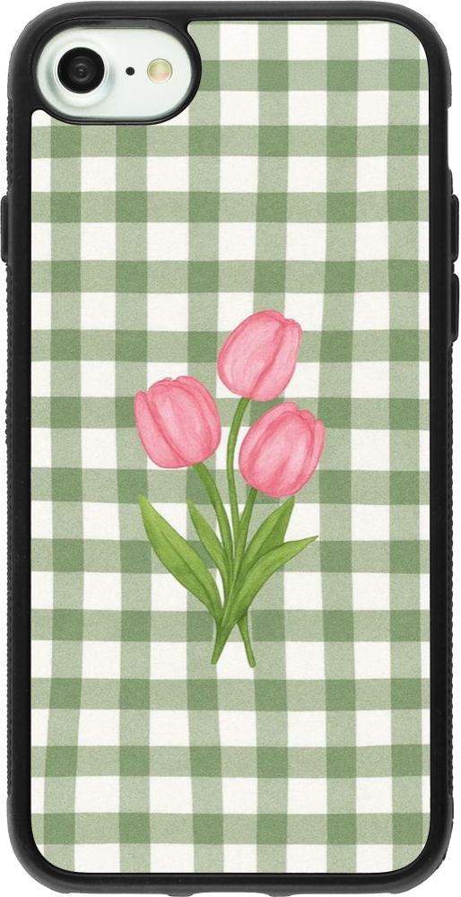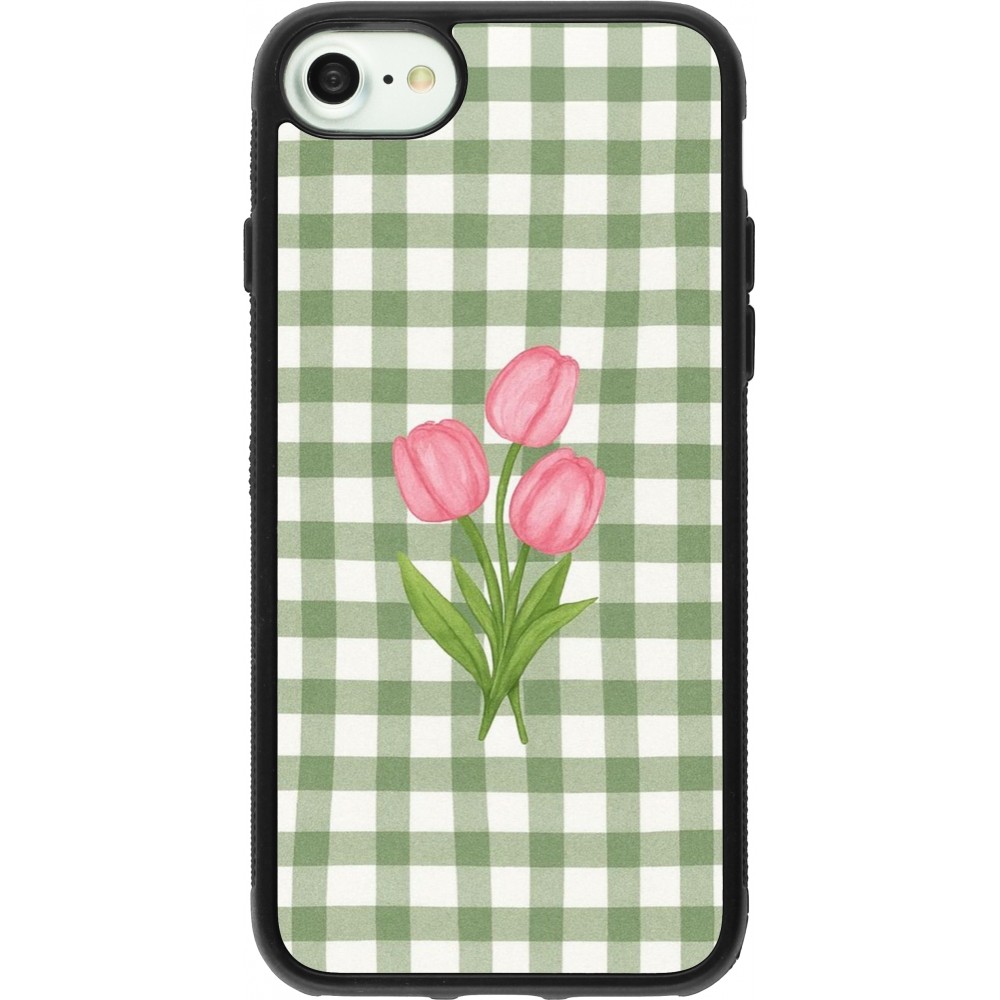 Coque iPhone 7 / 8 / SE (2020, 2022) - Silicone rigide noir Green vichy tulips 2026