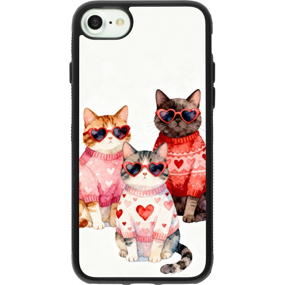 Coque iPhone 7 / 8 / SE (2020, 2022) - Silicone rigide noir Saint Valentines Day 26 Cat Love