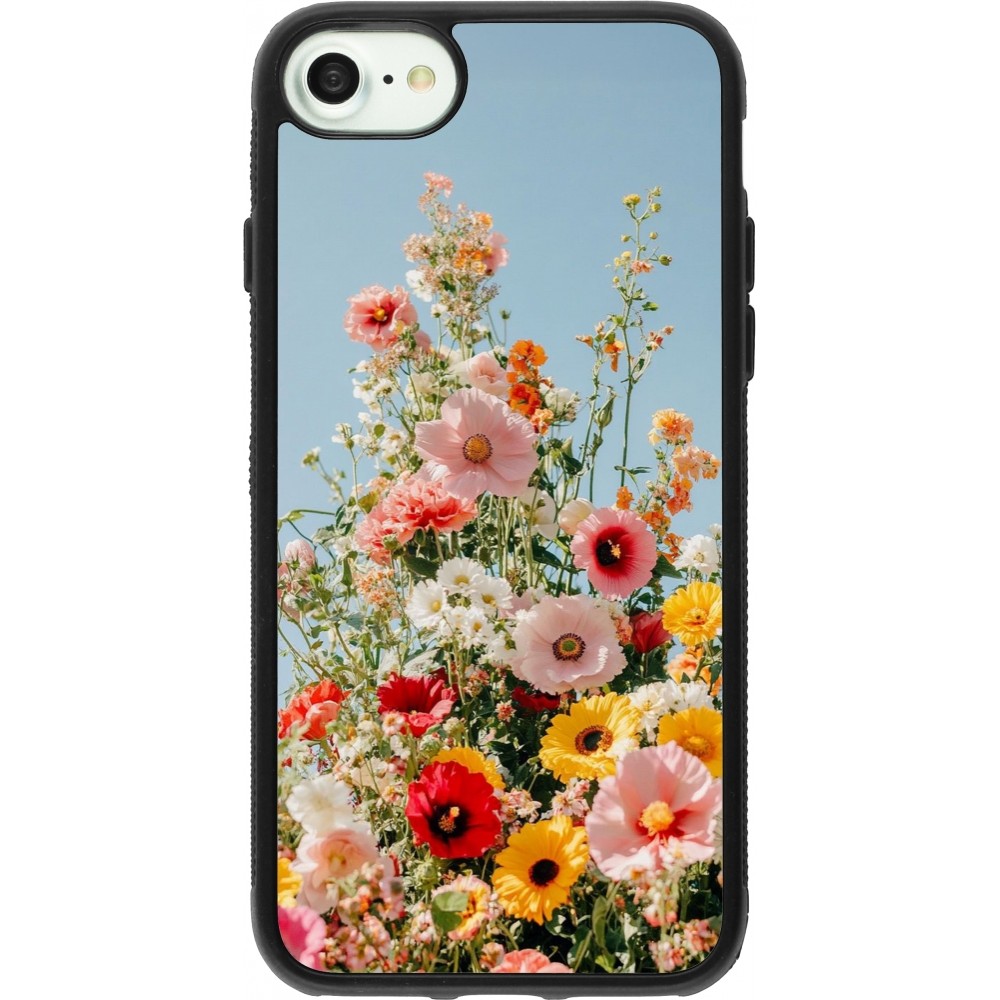 Coque iPhone 7 / 8 / SE (2020, 2022) - Silicone rigide noir Spring flowers 2026