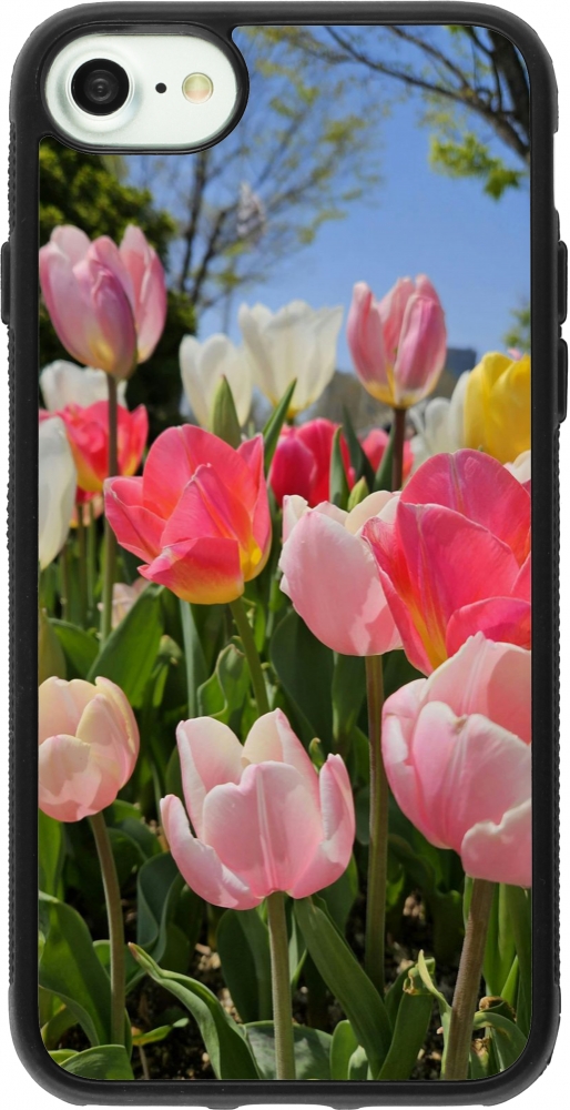 Coque iPhone 7 / 8 / SE (2020, 2022) - Silicone rigide noir Tulips 2026