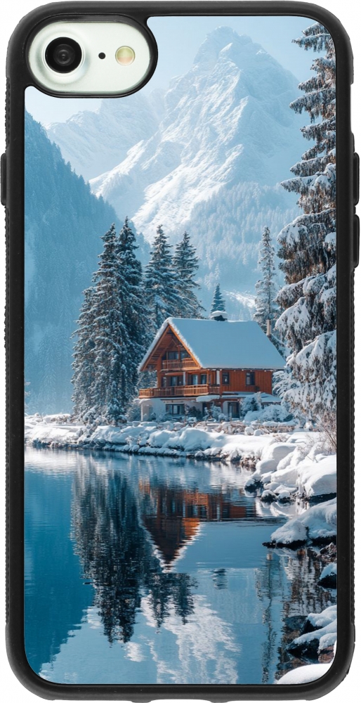 Coque iPhone 7 / 8 / SE (2020, 2022) - Silicone rigide noir Winter 25 Winter house forest day