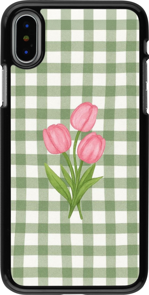 Coque iPhone X / Xs - Green vichy tulips Spring 2026