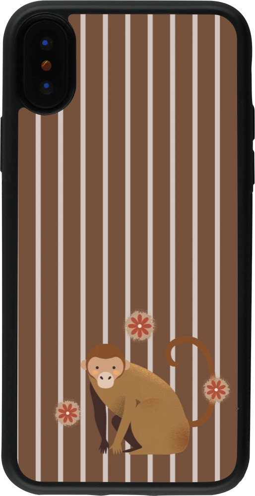 Coque iPhone X / Xs - Silicone rigide noir Monkey with stripes