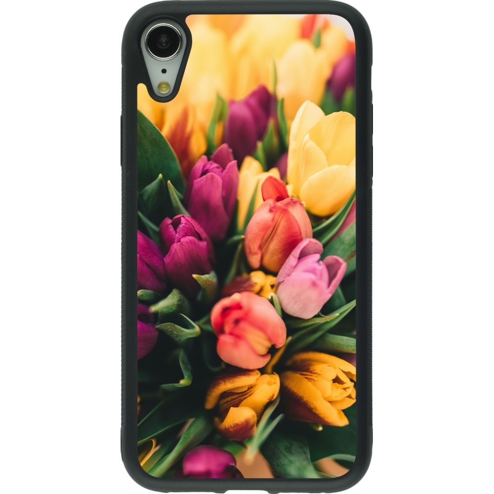 Coque iPhone XR - Silicone rigide noir Bouquet of tulips 2026
