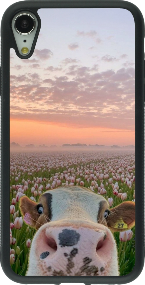 Coque iPhone XR - Silicone rigide noir Cow with tulips 2026