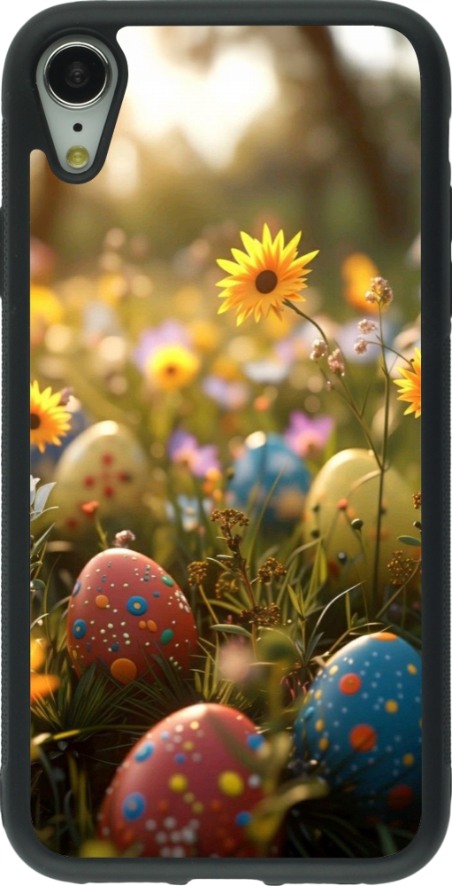 Coque iPhone XR - Silicone rigide noir Easter 2026 Decorated eggs