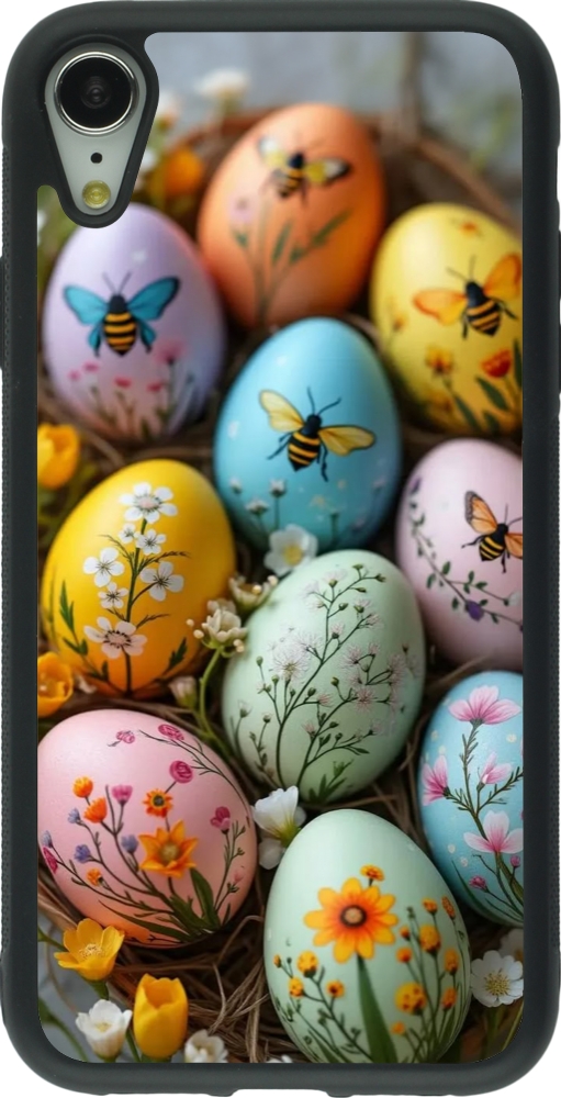 Coque iPhone XR - Silicone rigide noir Easter 2026 Eggs with bees
