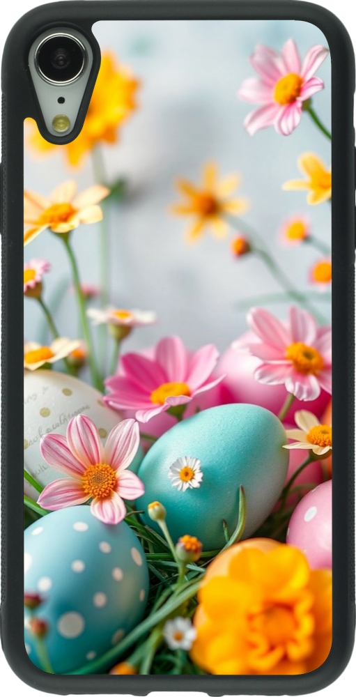 Coque iPhone XR - Silicone rigide noir Easter 2026 Eggs with flowers