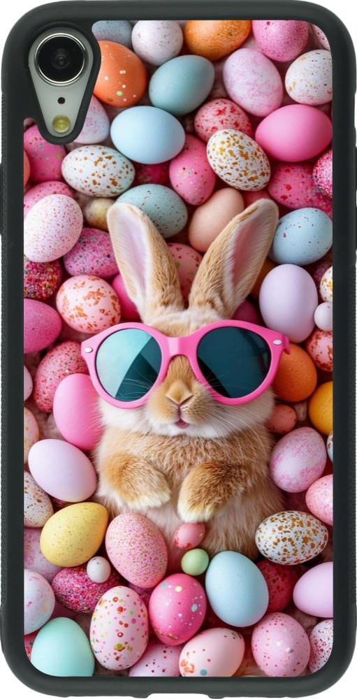 Coque iPhone XR - Silicone rigide noir Easter 2026 Rabbit fun