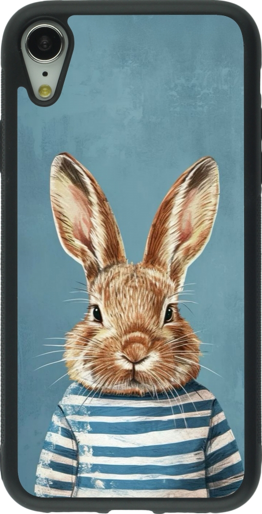 Coque iPhone XR - Silicone rigide noir Easter 2026 Rabbit navy