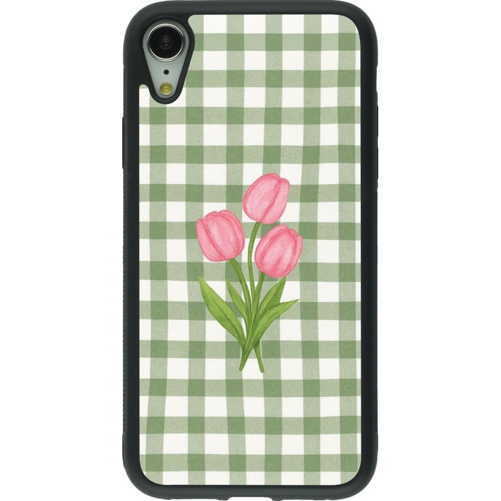 Coque iPhone XR - Silicone rigide noir Green vichy tulips 2026
