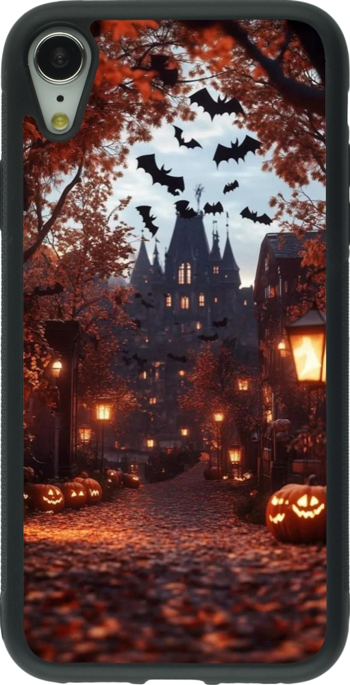 Coque iPhone XR - Silicone rigide noir Halloween 2025 Haunted house