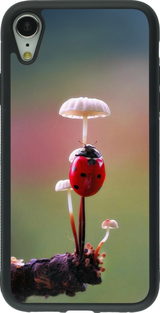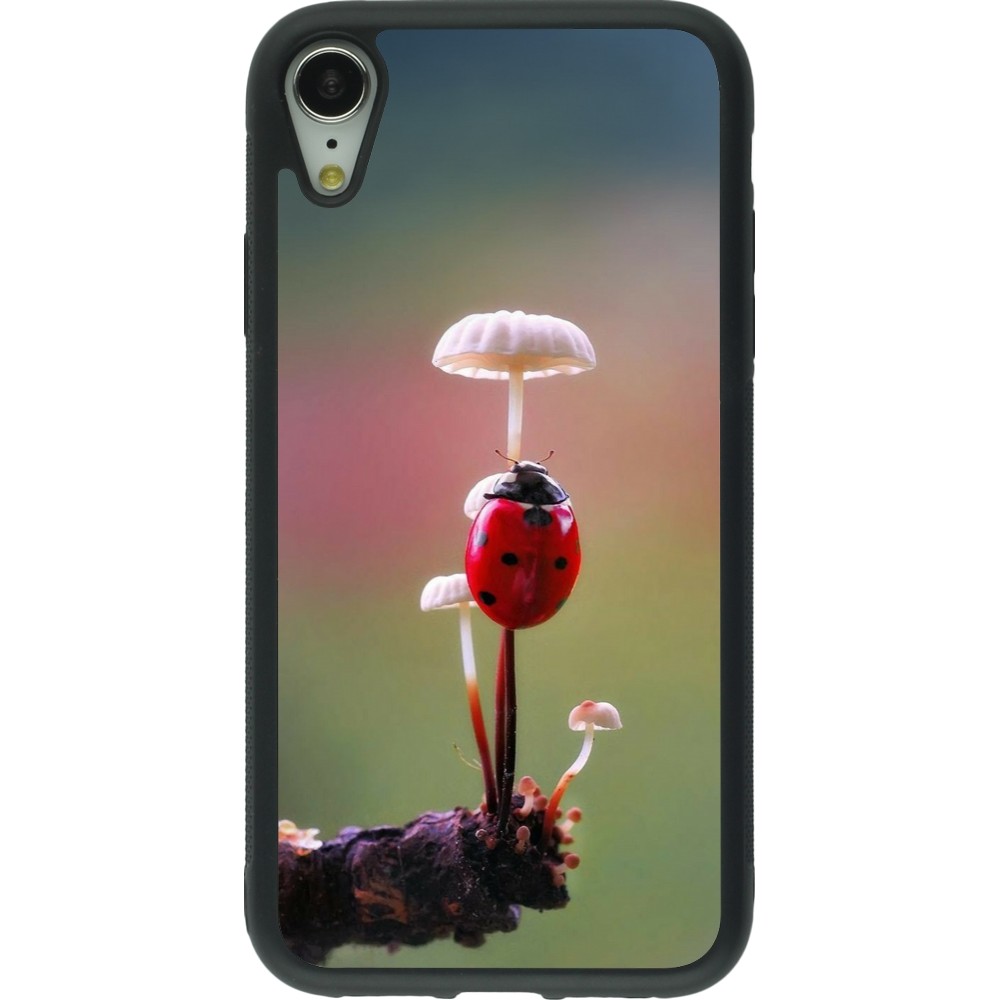 Coque iPhone XR - Silicone rigide noir Ladybird on a mushroom 2026