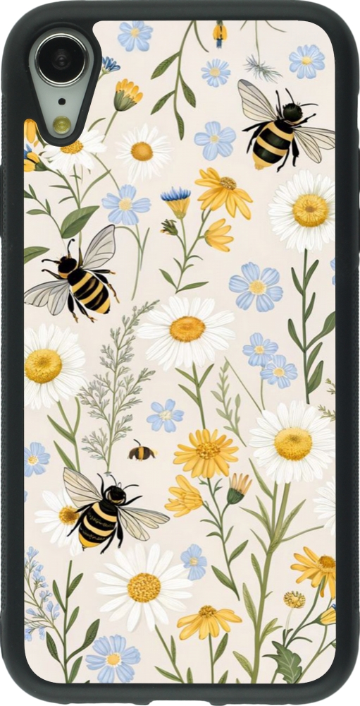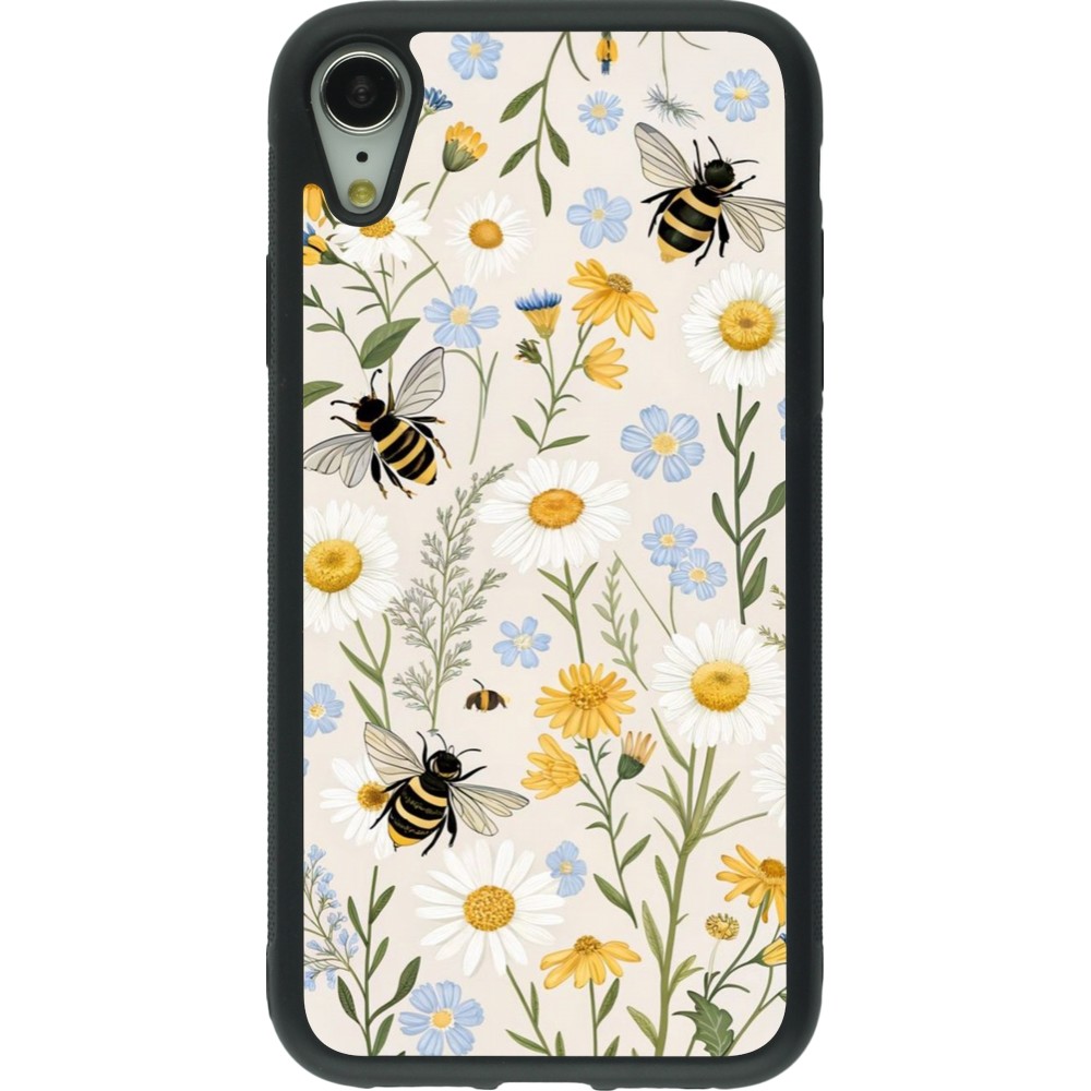 Coque iPhone XR - Silicone rigide noir Pattern bees 2026