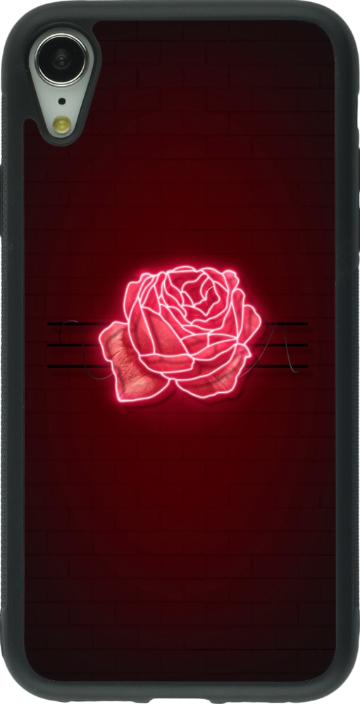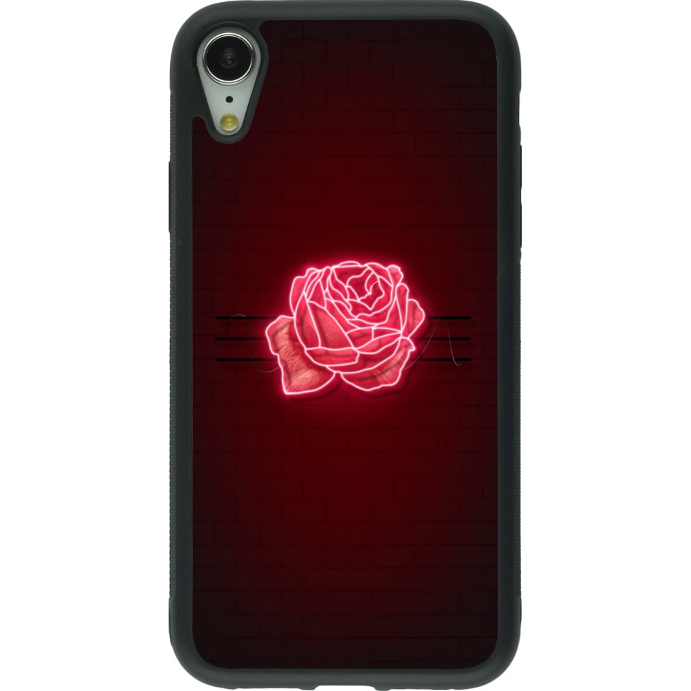 Coque iPhone XR - Silicone rigide noir Spring 23 neon rose