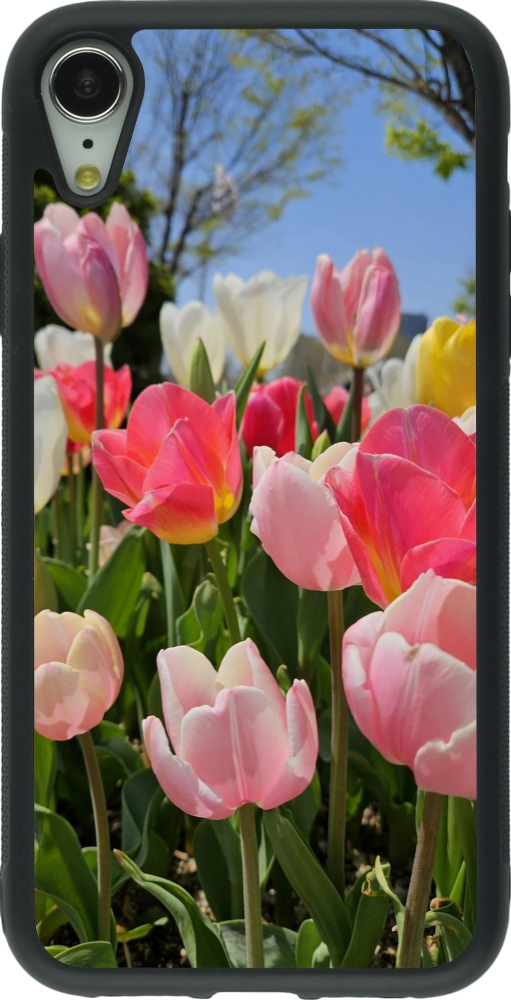 Coque iPhone XR - Silicone rigide noir Tulips 2026