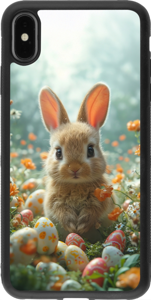 Coque iPhone Xs Max - Silicone rigide noir Easter 2026 Rabbit in the garden