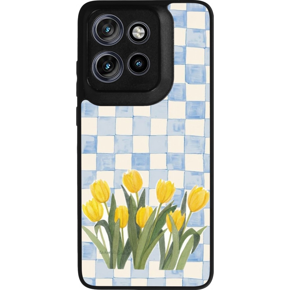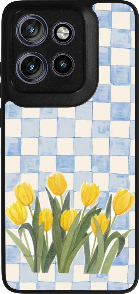 Coque Motorola Moto S50 - Silicone rigide noir Blue vichy tulips Spring 2026