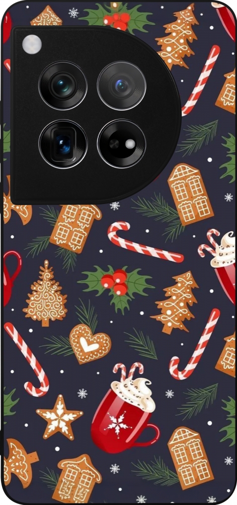 Coque OnePlus 12 - Silicone rigide noir Christmas 25 Pattern Gingerbread House