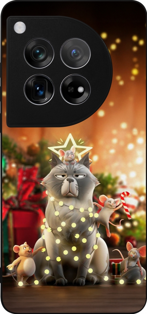 Coque OnePlus 12 - Silicone rigide noir Christmas 25 Xmas Cat
