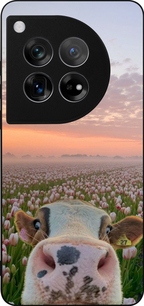 Coque OnePlus 12 - Silicone rigide noir Cow with tulips 2026