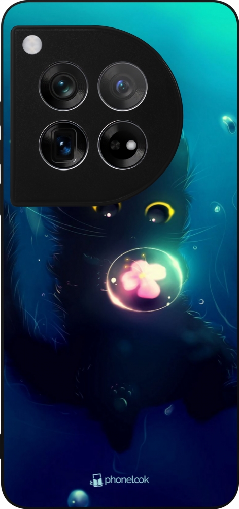 Coque OnePlus 12 - Silicone rigide noir Cute Cat Bubble