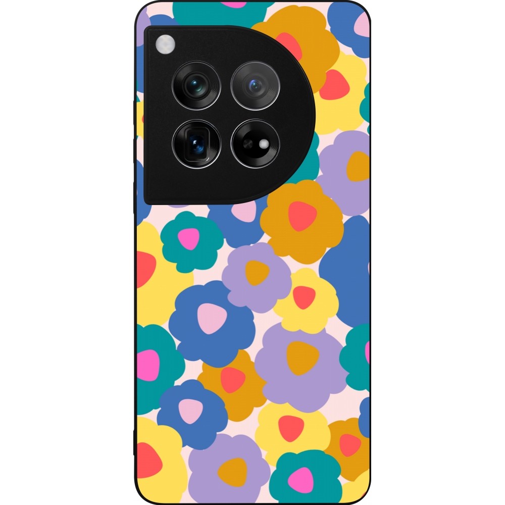 Coque OnePlus 12 - Silicone rigide noir Easter 2024 flower power