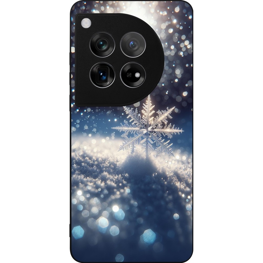 Coque OnePlus 12 - Silicone rigide noir Flocon Solaire Éclat