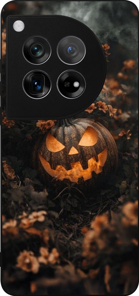 Coque OnePlus 12 - Silicone rigide noir Halloween 2025 Pumpkin with flowers