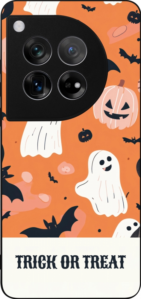 Coque OnePlus 12 - Silicone rigide noir Halloween 2025 Trick treat