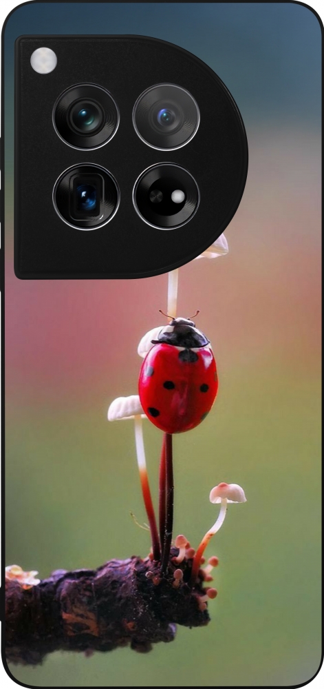 Coque OnePlus 12 - Silicone rigide noir Ladybird on a mushroom 2026