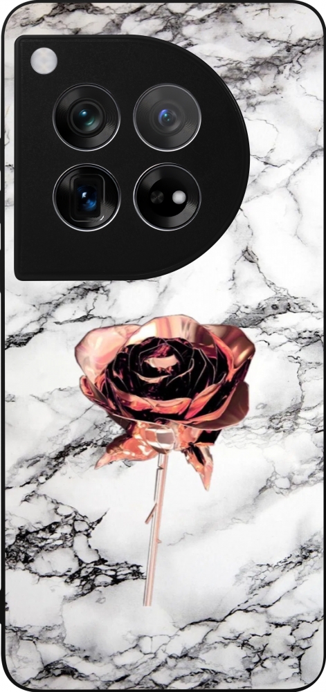 Coque OnePlus 12 - Silicone rigide noir Marble Rose Gold