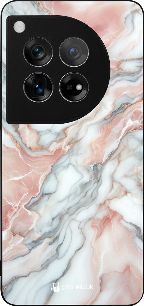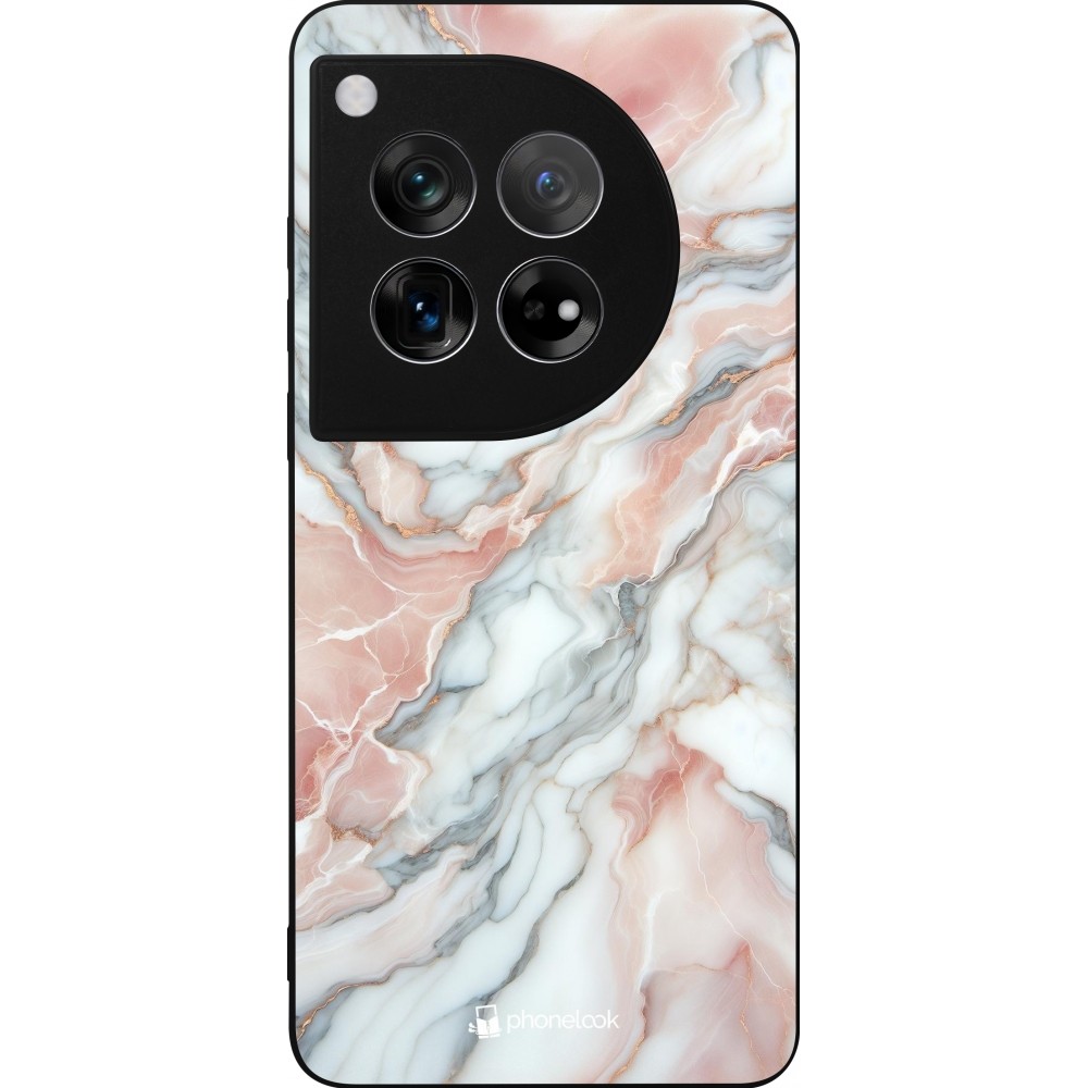 Coque OnePlus 12 - Silicone rigide noir Marbre Rose Lumineux