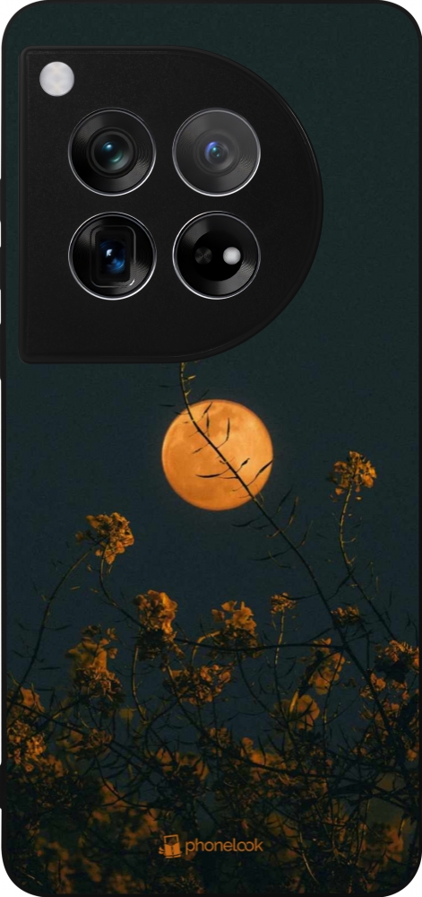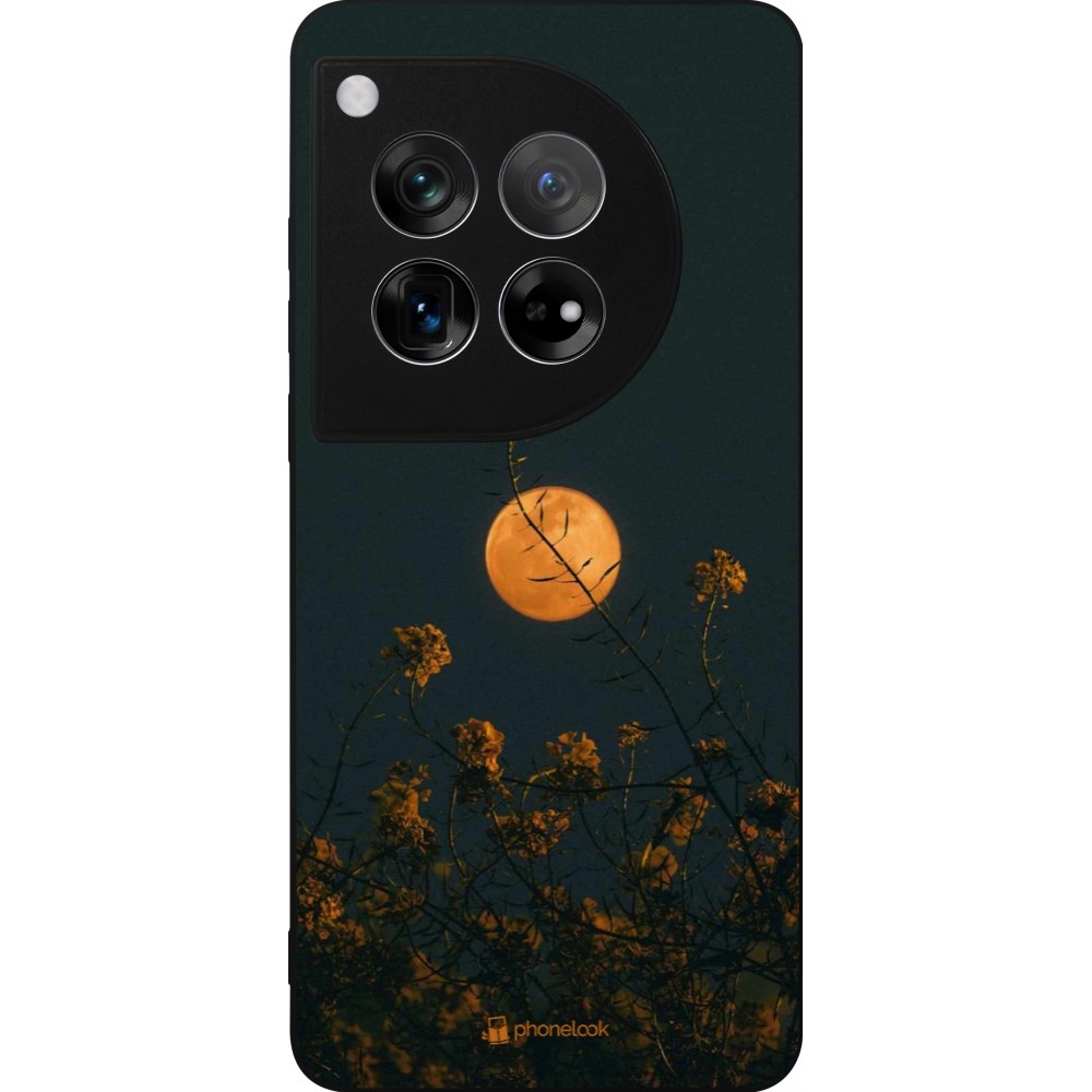 Coque OnePlus 12 - Silicone rigide noir Moon Flowers
